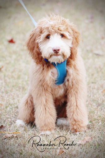 Mako comes to us from our friends at Serendipity Doodles. We are thrilled with him! He is a mini at 20 lbs and is a sweet, loving, fun little guy. He is an apricot with a white chest, chin and paws. His awesome guardians take the best care of him and his older brother Griffin (retired below) he loves to cuddle with his three sisters and to cheer on the OCA football team...Go Sharks! He is the perfect southern gentleman and we can't wait to see his puppies.